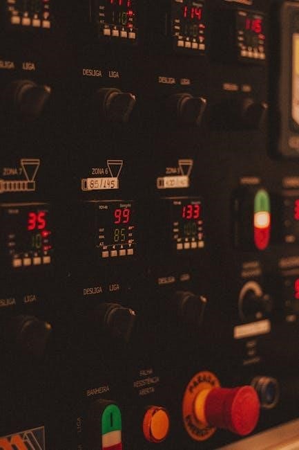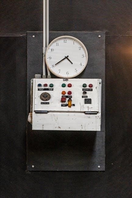 Proper installation is crucial for reliable operation. The manual provides detailed electrical wiring diagrams, specifying connections for power, sensors, and outputs. Panel mounting instructions ensure secure placement, while sensor connection guidelines detail correct wiring for accurate readings. Always adhere to safety precautions during installation, verifying correct voltage and polarity before powering on the controller for optimal performance.
